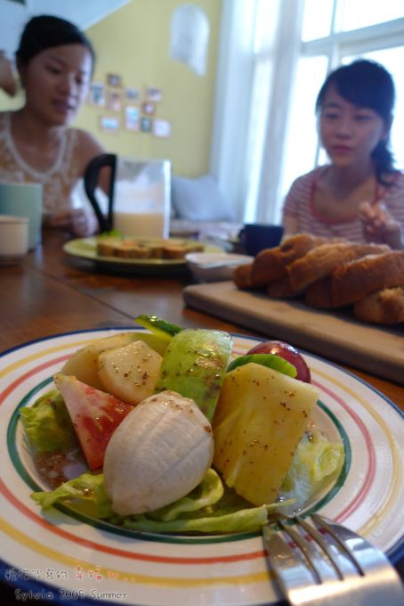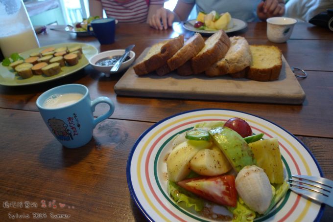 有手工果醬,手工吐司,還有自己早上起來磨的豆漿 跟均衡的水果蔬菜沙拉!