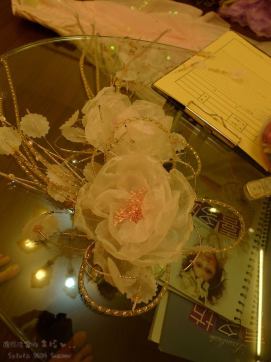 粉色禮服附件1: 兩朵很華麗的粉嫩花花,一個可用來放在腰側、