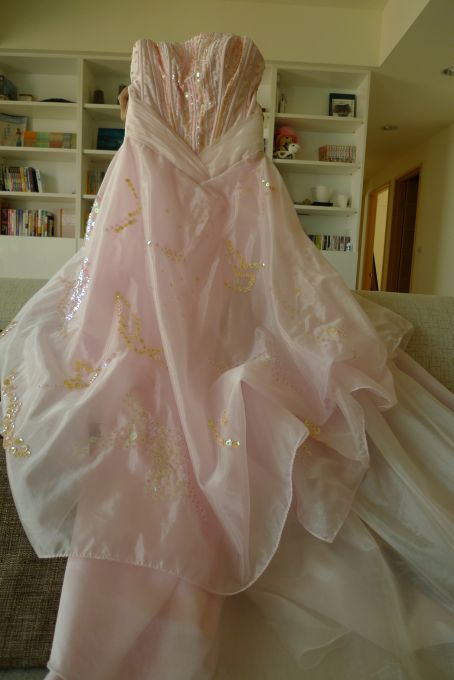 我非常喜歡這件柔柔嫩嫩的粉紅色禮服,想當初人家也是花了幾千塊買的,