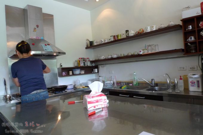 果不其然,站在開放式廚房後的酷酷老板娘已經在手時廚房抬面了-_____-|||